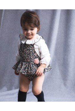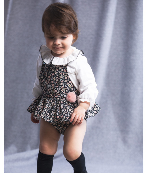 PETO VOLANTE VIELLA FLORES NEGRO POMPÓN PELO ECOLÓGICO