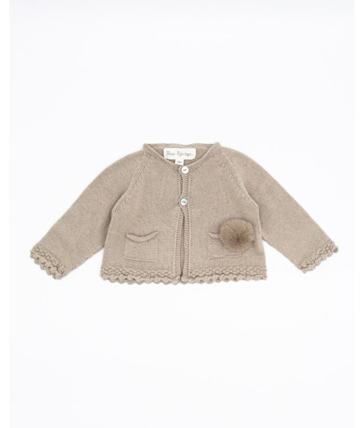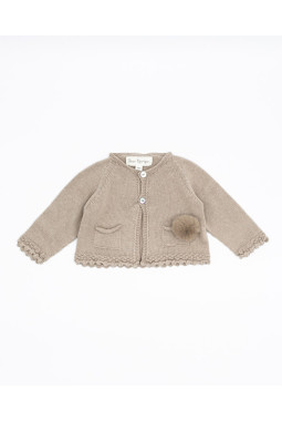 CHAQUETA PUNTO ALGODÓN LANA MERINO POMPÓN PELO ECOLÓGICO