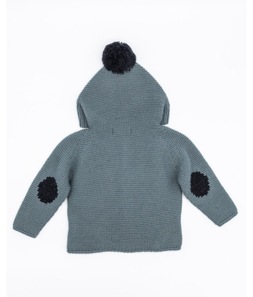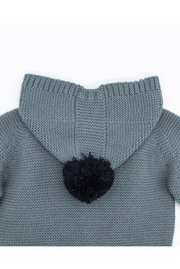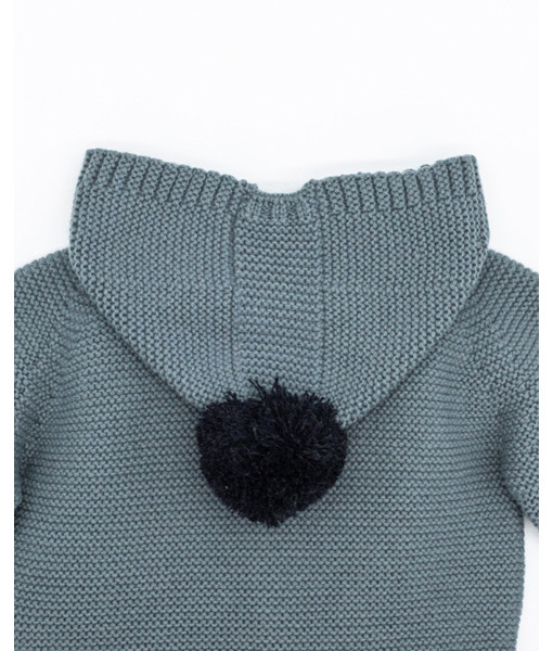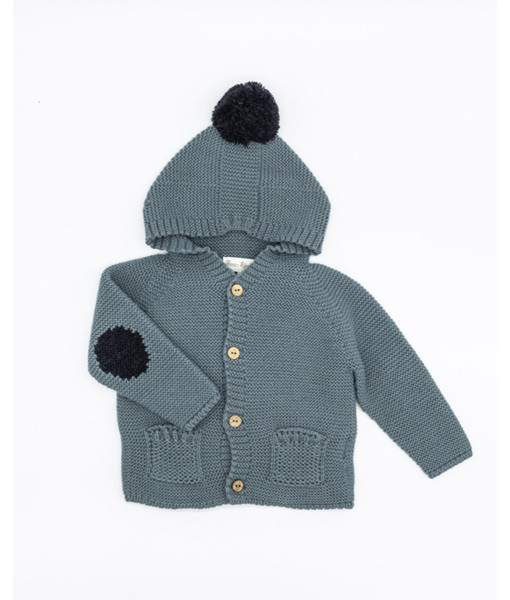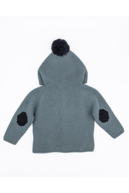 CHAQUETA PUNTO CAPUCHA CON POMPÓN Y CODERAS AGUA