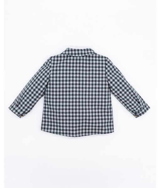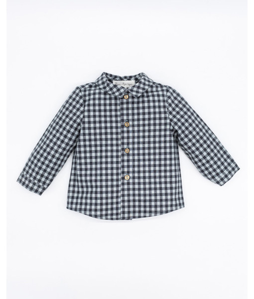 CAMISA POPELÍN CUADROS GRISES Y AGUA
