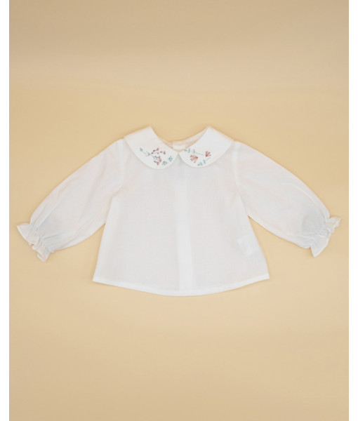 BLUSA PERCAL CRUDO CUELLO BORDADO
