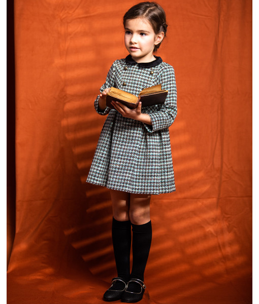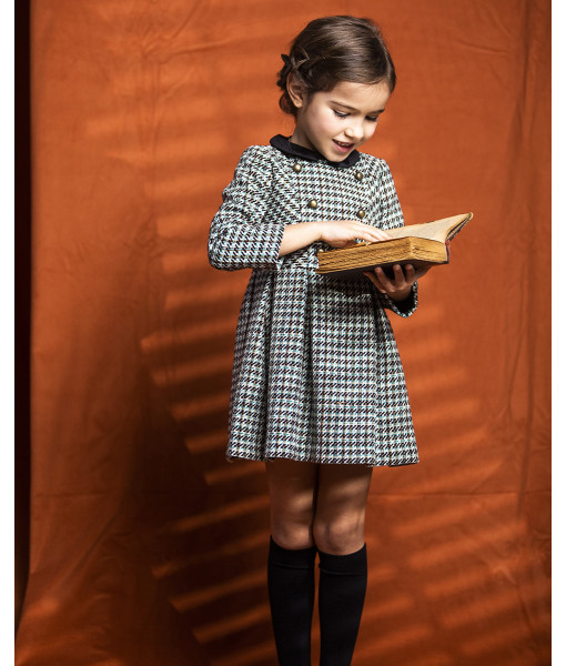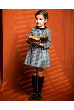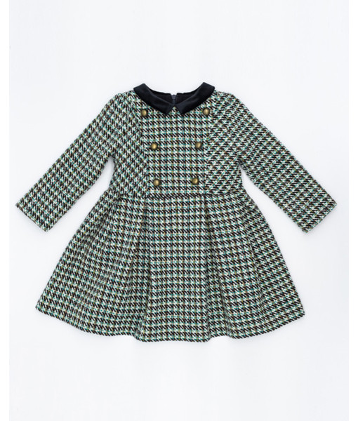 VESTIDO BOTONES CUELLO TERCIOPELO LANA TEJA Y NEGRO