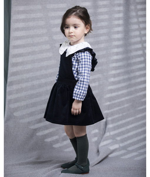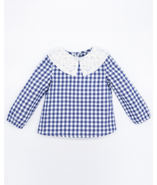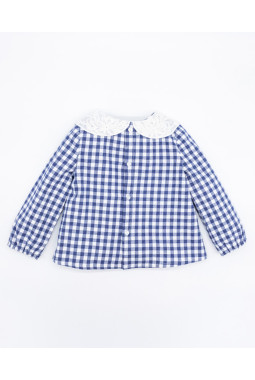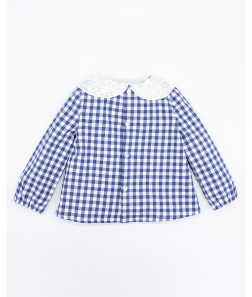 BLUSA VIELLA CUADRO VICHY AZUL CUELLO BORDADO