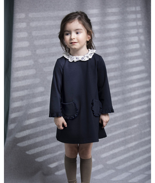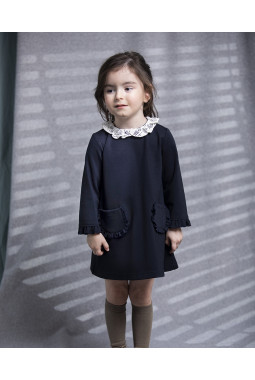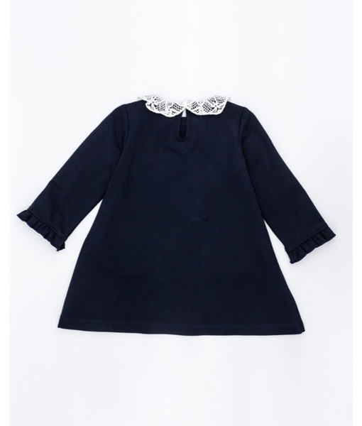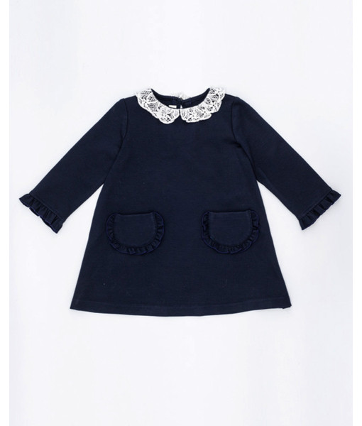 VESTIDO PUNTO ROMA NAVY CUELLO CROCHET