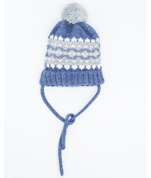 GORRO GRECA LANA MERINO AZUL CON POMPÓN
