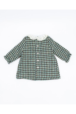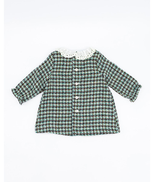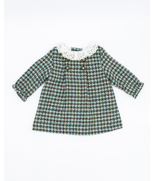 VESTIDO MINI LANA TEJA Y NEGRO CUELLO BORDADO