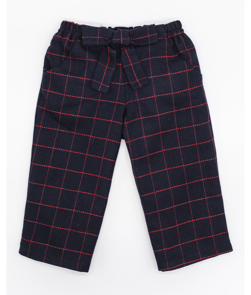 PANTALÓN LANA MARINO CUADROS ROJOS