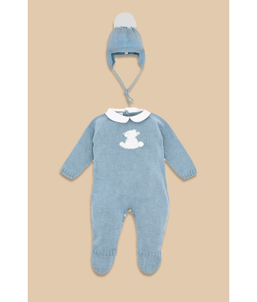 GORRO Y PELELE TRICOT AZUL BEBÉ