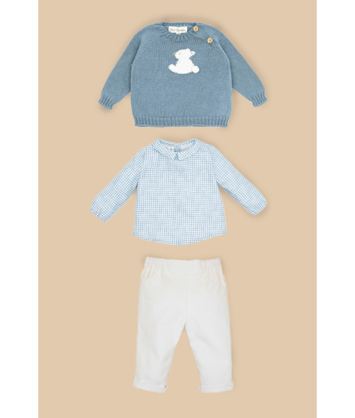 JERSEY, CAMISA CUADROS VICHY AZUL Y PANTALÓN PANA BEBÉ