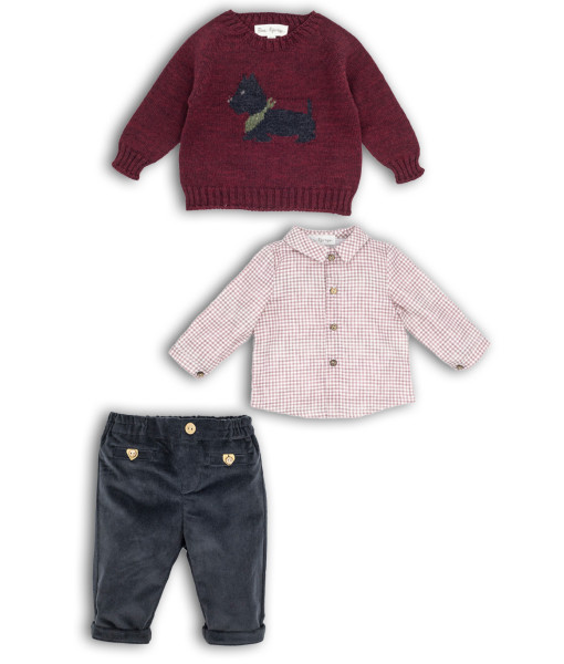 JERSEY PERRO, CAMISA CUADROS Y PANTALÓN GRIS