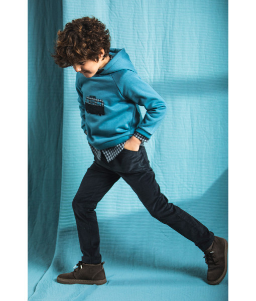 SUDADERA CARAVANA, CAMISA CUADROS Y PANTALÓN GOMAS GRIS
