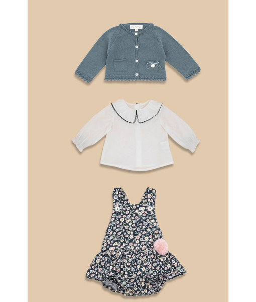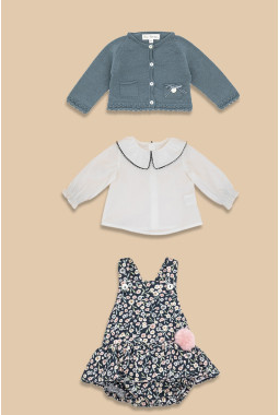 CHAQUETA, BLUSA Y PETO FLORES ROSA Y NEGRO