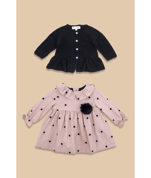 CHAQUETA VOLANTE Y VESTIDO MINI TOPO ROSA Y NEGRO