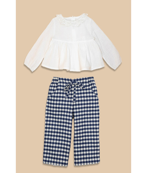 BLUSA Y PANTALÓN ANCHO CUADRO VICHY AZUL