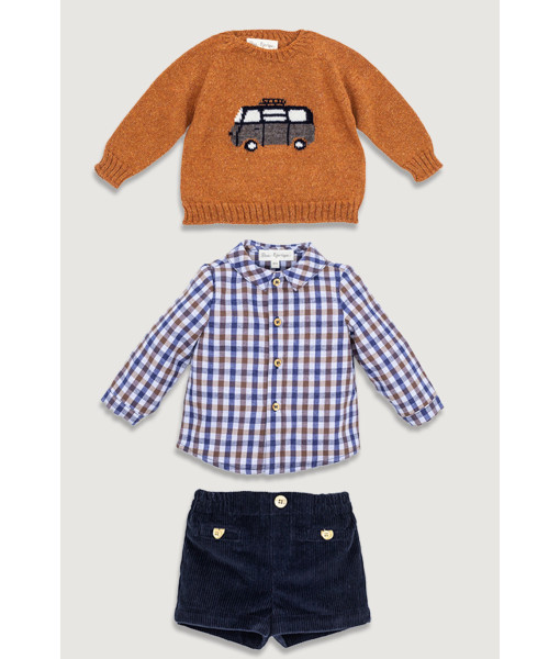 JERSEY CARAVANA, CAMISA CUADROS Y BERMUDA NAVY