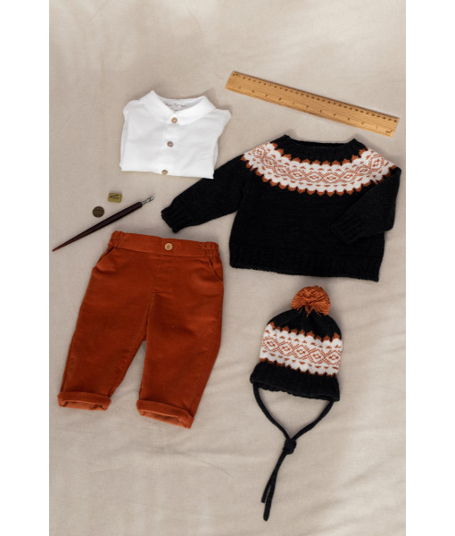 GORRO, JERSEY GRECA, CAMISA Y PANTALÓN PANA TEJA