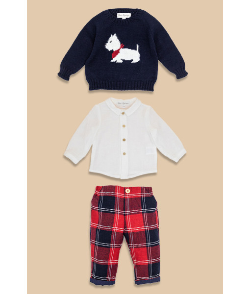 JERSEY PERRO, CAMISA Y PANTALÓN CUADROS TARTAN LANA ROJO