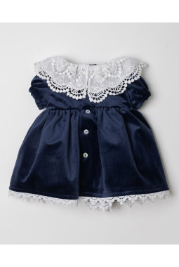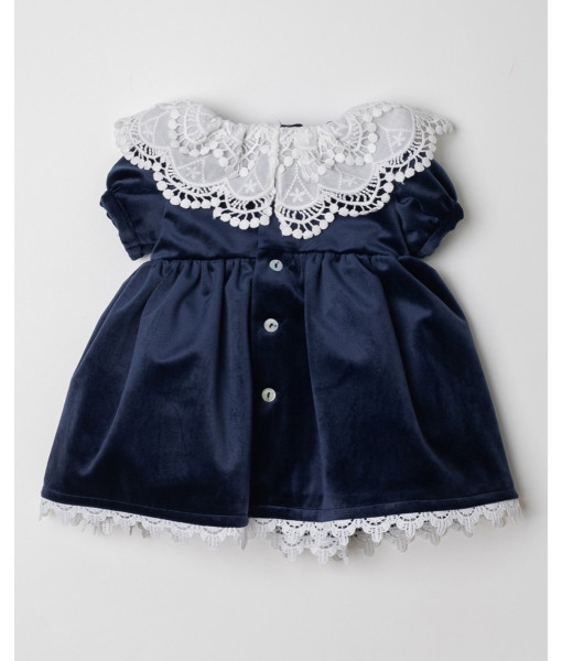 VESTIDO MINI TERCIOPELO MAVY CON CUELLO BORDADO GUIPOUR