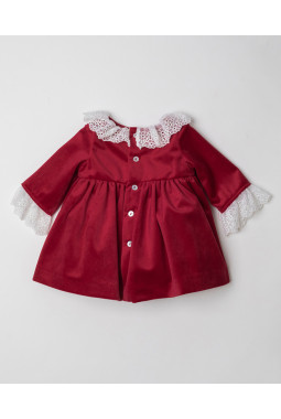 VESTIDO MINI TERCIOPELO ROJO CON CUELLO Y MANGAS TUL BORDADO